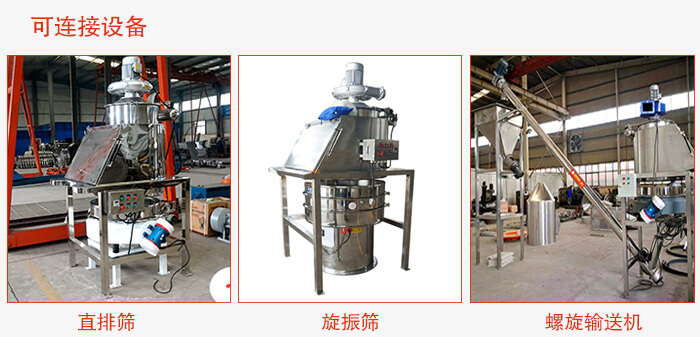 以上是對無塵投料站的詳細介紹,本機可與輸送機(如螺旋輸送機、柔性輸送機、真空輸送機)或振動篩配套使用。
